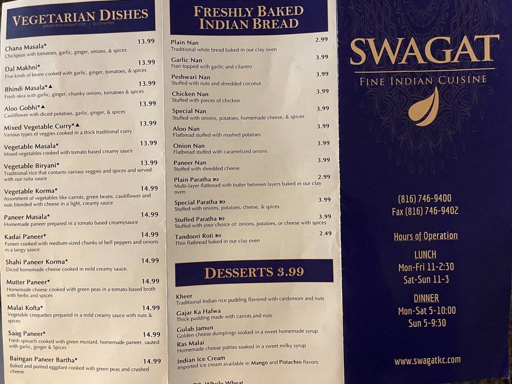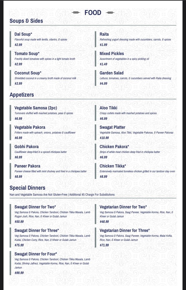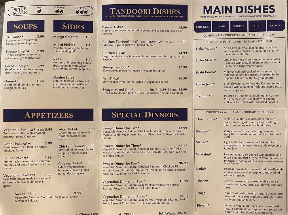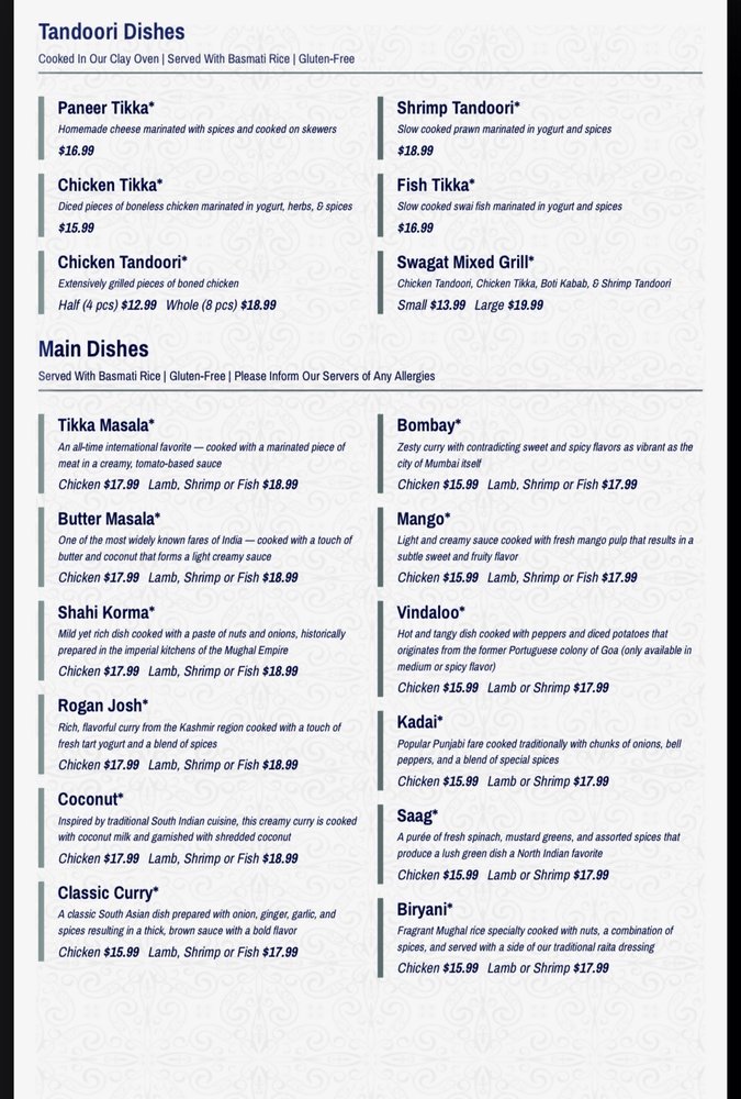 Swagat Fine Indian Restaurant Menu (2025 Update)